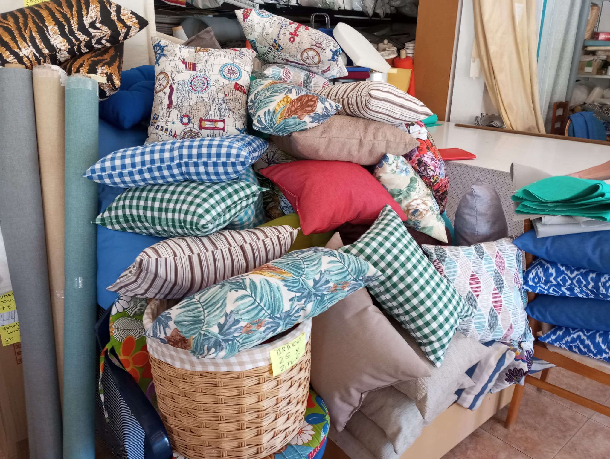 Con más de 20 años trabajando en la Axarquía, se desmarca del resto por la elaboración de los trabajos encargados, la eficacia en el tiempo de entrega, y un trato personalizado para cada cliente. Realizamos: - Forros de cojines Torrox - Mantelería Torrox - Servilletas Torrox - Tejidos Torrox - Cortinas y Estores Torrox - Reformas de sofa Torrox - camas balinesas Torrox Trabajamos para hostelería y hogar, no dude en venir a visitar nuestras instalaciones. OFERTA: cojines a 2€ y 3€ ---- VER FOTOS -POR RAZONES DE SALUD ALGUNOS DIAS DE LA SEMANA PERMANECEREMOS CERRADOS, PUEDE CONTACTAR AL TELEFONO WATTS APP 650 96 46 24. DISCULPEN LAS MOLESTIAS. --HORARIO-- --INVIERNO-- de lunes a viernes de 09:15 a 14:00 Sabados ( solo con cita previa ) Para cita previa llamar 24 horas antes al Tlf 650 96 46 24